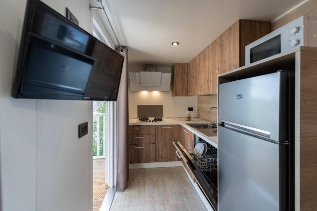 La struttura si suddivide in area villaggio e in area camping: piazzole con servizi igienici centrali con acqua calda gratuita, dove sono ubicate la lavatrice e la stireria; villini in muratura e case mobili in legno, tutti con tv e climatizzatore.