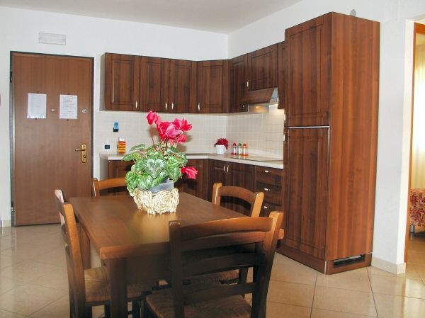 Appartamenti trilocali con soggiorno con angolo cottura e divano letto matrimoniale, camera matrimoniale, cameretta con due letti, bagno e terrazzo