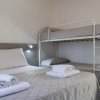 Due stanze, letti matrimoniali e a castello, divise da una parete.