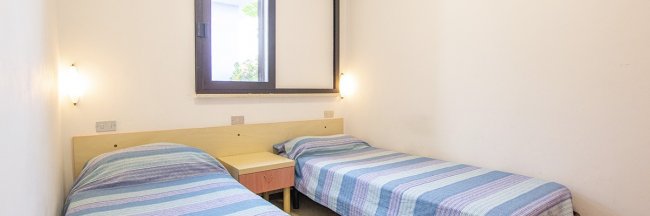 trilocali di circa 23 m² completi di veranda esterna con panca, tavolo, sedie e 2 lettini da mare; cucina, stoviglie, frigo, aria condizionata, tv e bagno privato con doccia.
