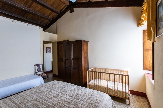 Camera da letto con letto matrimoniale e singolo.